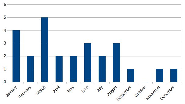 In total we have 26 posts, which is about a biweekly schedule. We will see later, that this is a bit skewed to the beginning of the year.